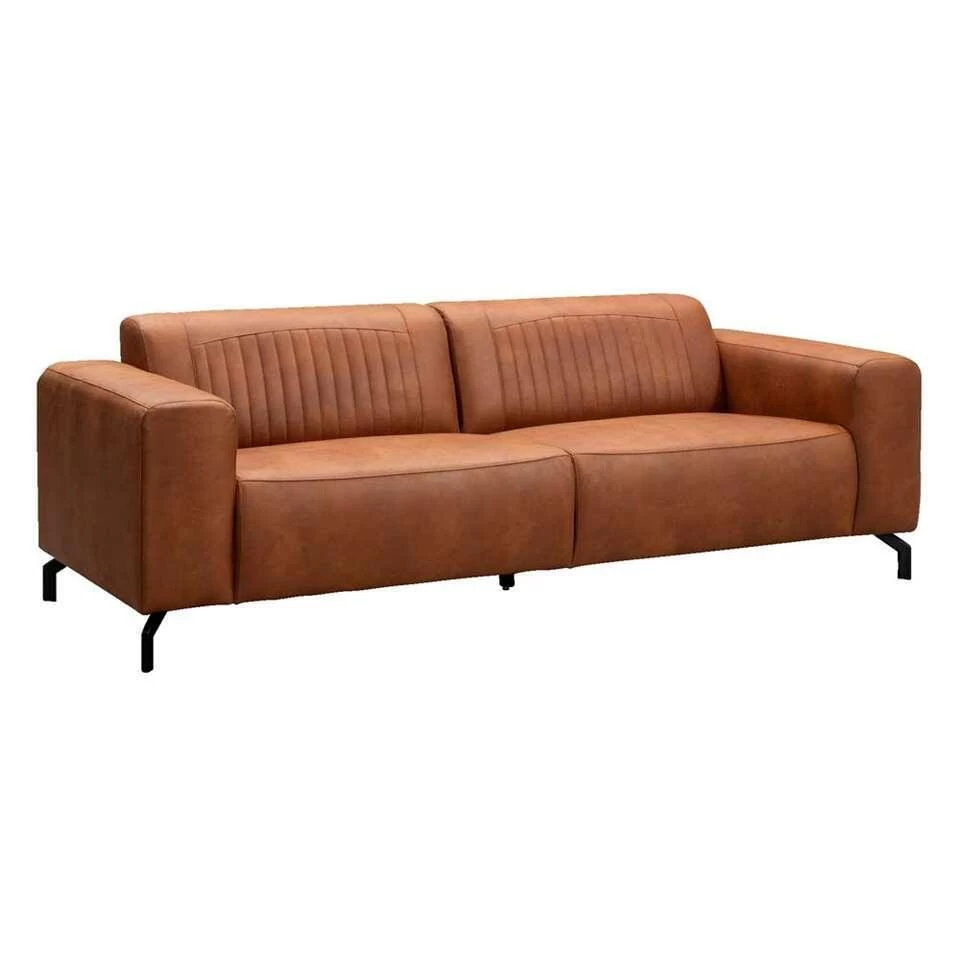 Bank Otis is een stoere, royale en comfortabele 3-zits bank bekleed met microleder Kentucky in de kleur cognac.