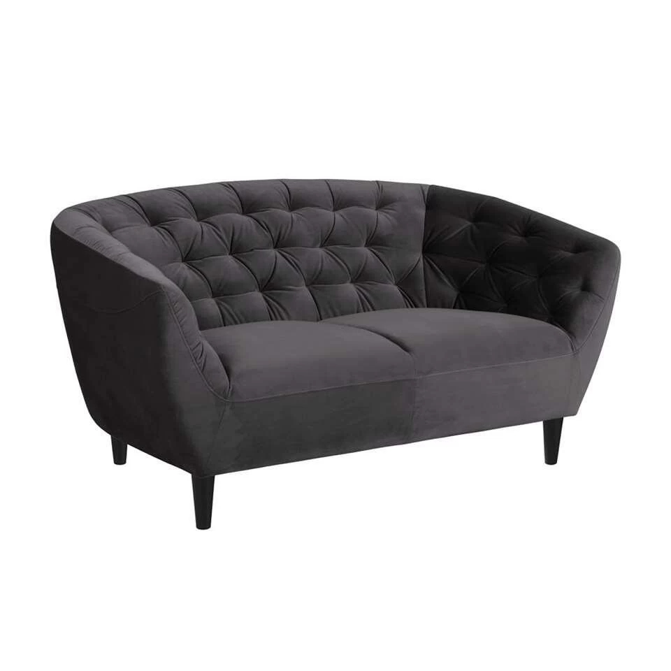 Dit bankje is bekleed met donkergrijze velvet stof en heeft een echte retro look.