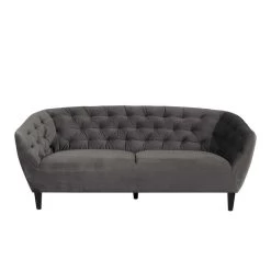 Bank Thyrza is een opvallende verschijning. Dit bankje is bekleed met donkergrijze velvet stof en heeft een echte retro look. De rugleuning is hoog en gecapitonneerd.