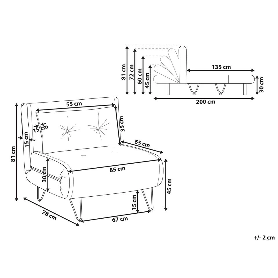 Belangrijkste eigenschappen: Zeer gemakkelijk te veranderen in een bed, Rugleuning in 5 posities verstelbaar, Retro Stijl, Elegant accentstuk, Versiert met knoopdetails, Zijdezacht, fluwelen stof, Verwijderbare kussenhoezen, Verstelbare rugleuning