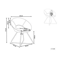 Gestoffeerde stoel zonder armleuningen. Creëer een opvallende woonruimte met deze gestoffeerde stoel. Zijn stijlvolle, gebogen rugleuning gecombineerd met een kruisvormige basis zal zeker de aandacht trekken van al jouw gasten. Bovendien maakt de klassieke kleur het een geweldige aanvulling op verschillende interieurstijlen, van retro tot glamour. De stoel is gestoffeerd met zacht fluweel, dat prettig aanvoelt en weinig onderhoud vergt om jarenlang mee te gaan.