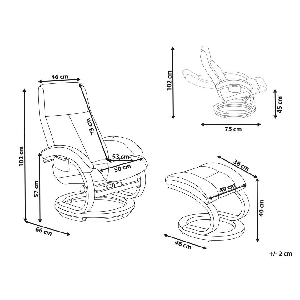 Belangrijkste eigenschappen: massage-programmas in 5 posities verstelbaar, Met verwarming voor maximaal comfort, Inclusief kruk, Ontspannende zitpositie, Uiterst comfortabele zitting, Ergonomische, verstelbare rugleuning, Perfect gevormde armleuningen, Tijdloos design, Hoogwaardig materiaal, Verstelbare rugleuning