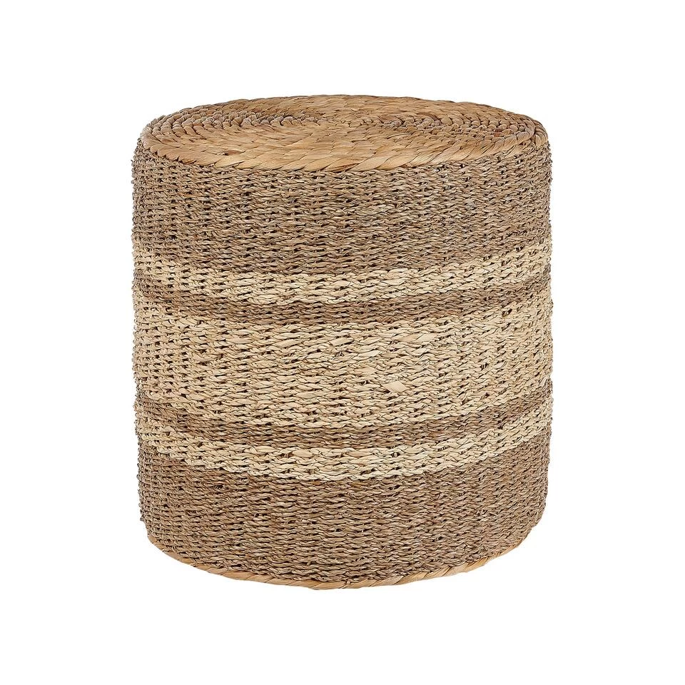Handgeweven ronde poef. Verfraai de uitstraling van je woon- of slaapkamer met deze uitzonderlijke extra zitplaats. Dit product is handgeweven van natuurlijke materialen en past uitstekend bij veel interieurontwerpen. Het stuk is multifunctioneel, naast een poef kan het ook dienst doen als voetenbankje. Bovendien kan dit meubel dankzij de stabiele constructie en het platte blad ook als bijzettafel worden gebruikt.