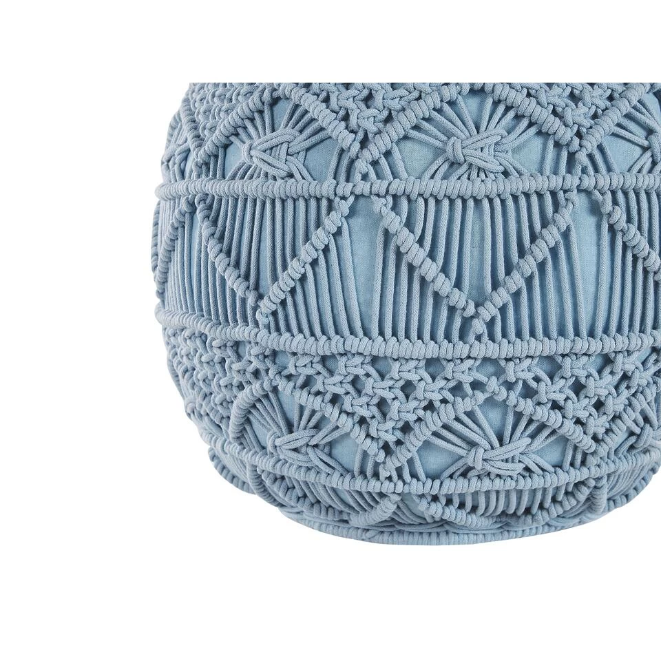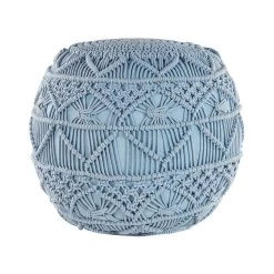 Schattige gebreide poef. Esthetisch charmant en tegelijkertijd heel praktisch. Met deze leuke boho – poef in stijlvolle blauw is dit heel goed mogelijk. Dankzij het decoratieve breiwerk en de aandacht voor detail draagt deze poef bij aan extra sfeer in iedere woonruimte. Je kunt deze poef als alleenstaand meubelstuk of decoratie item gebruiken, maar ook kiezen voor meerdere, bijvoorbeeld in verschillende kleuren.