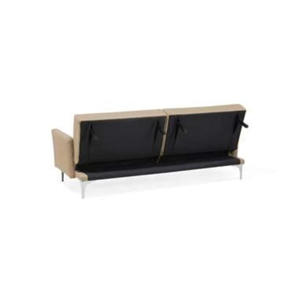 Moderne slaapbank. Deze slaapbank is zowel stijlvol als compact, ideaal voor kleinere woonkamers. De beige, stoffen bekleding van de slaapbank voelt heel zacht aan en is uitzonderlijk slijtvast. Het frame van eucalyptushout zorgt voor comfort en stabiliteit. De slaapbank wordt geleverd met afneembare kussenhoezen voor eenvoudige reiniging. De slaapbank kan gemakkelijk worden omgebouwd tot een bed en biedt indien nodig extra slaapruimte. Deze bank werkt geweldig in moderne appartementen, maar past ook perfect in meer traditionele interieurs.