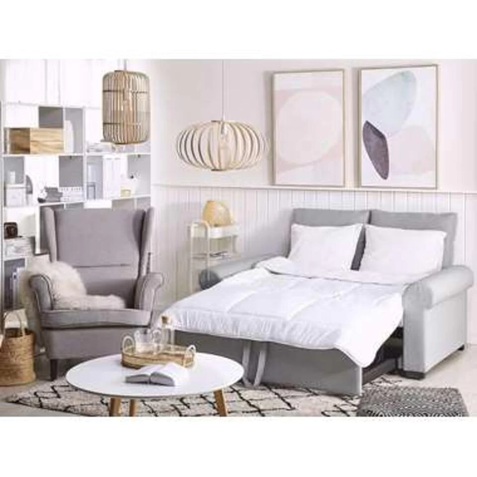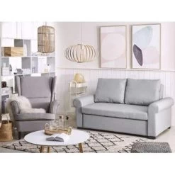 Klassieke 2-zits bank met slaapfunctie in lichtgrijs. Deze bank is een perfecte oplossing voor mensen die waarde hechten aan functionaliteit en stijl. Het frame is gemaakt van duurzaam en stevig hout en is bekleed met duurzaam polyesterweefsel. De neutrale kleur en rechtlijnige vorm zorgen ervoor dat het naadloos past in traditionele en moderne ruimtes. Het design van de tweezitsbank wordt benadrukt door armleuningen met retro-design. De bank kan dankzij het uittrekmechanisme eenvoudig worden omgebouwd tot een comfortabel bed, waardoor je gasten extra slaapruimte krijgen.
