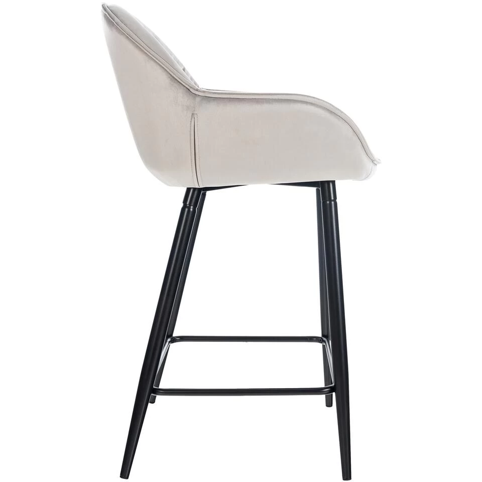 De barkruk dankt zijn chique uitstraling aan de combinatie van het matzwarte frame en de modieuze bekleding. De Gibson is naar keuze verkrijgbaar met een gewatteerde stoffen of fluwelen bekleding en in diverse kleuren.