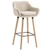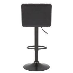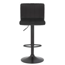 Deze barkruk geeft elke ruimte een exclusieve uitstraling en overtuigt niet alleen door zijn uitstekende zit eigenschappen, maar ook door zijn moderne design. De zitting is bekleed met een gemakkelijk te onderhouden fluwelen hoes. Met behulp van de gasveer kan dit model traploos op de gewenste hoogte worden ingesteld, zodat het ideaal geschikt is voor elke aanrechthoogte. De voetsteun, die voor een zeer goed zitcomfort zorgt, kan synchroon met de hoogte van de zitting worden versteld. De zitting kan samen met de voetsteun 360° gedraaid worden. De trompetvoet van zwart metaal heeft vloerbeschermers aan de onderkant om te voorkomen dat er krassen op oppervlakken komen.