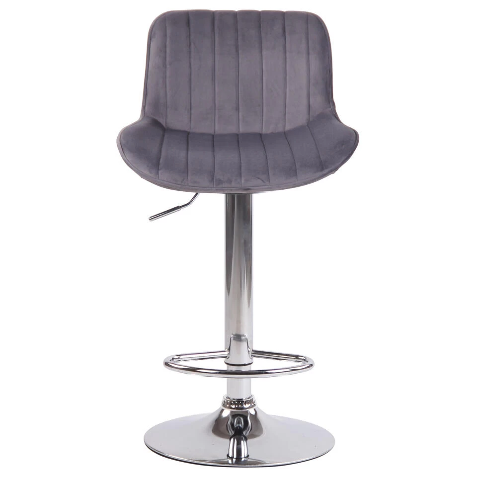 Deze barkruk geeft elke ruimte een exclusieve uitstraling en overtuigt niet alleen door zijn uitstekende ziteigenschappen, maar ook door zijn moderne design. De zitting is bekleed met een gemakkelijk te onderhouden fluwelen hoes. Met behulp van de gasveer kan dit model traploos op de gewenste hoogte worden ingesteld, zodat het ideaal geschikt is voor elke aanrechthoogte. De voetsteun, die voor een zeer goed zitcomfort zorgt, kan synchroon met de hoogte van de zitting worden versteld. De zitting kan samen met de voetsteun 360° gedraaid worden. Het frame is naar keuze gemaakt van metaal in chroomlook, wit of zwart metaal. Bovendien zitten er vloerbeschermers onder de trompetvoet om te voorkomen dat er krassen op de vloer komen.