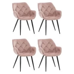 Met de Set van 4 eetkamerstoelen Tanna komen stijlbewustzijn en zitcomfort samen. De fauteuilvormige stoelen overtuigen niet alleen door hun moderne uiterlijk, maar ook door hun hoge comfort, dat wordt geboden door verhoogde armleuningen en gecapitonneerde rugleuningen. Dankzij de onderhoudsvriendelijke materialen kan elke eetkamerstoel snel en gemakkelijk worden schoongemaakt. Een modern onderstel van metaal geeft de set stabiliteit. Er zitten vloerbeschermers onder de poten, die krassen en vlekken op de vloer voorkomen. De moderne set presenteert zich in liefde met stijl in acht kleurvariaties: Blauw, bruin, creme, donkergrijs, grijs, roze, rood of zwart.