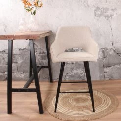 Geniet van deze prachtige barstoel van onze eigen collectie DS4U. Deze Lenon barkruk in bouclé is absoluut favoriet! Onze eigen barkruk Lenon heeft een moderne uitstraling. Daarnaast zit hij extreem comfortabele zit. Lenon is voorzien van lage armleuningen en een opening in de achterzijde voor een openlijke look. Lenon is verkrijgbaar in drie mooie kleuren bouclé en als eetkamerstoel. Combineer deze items samen voor eenheid in het interieur. Het onderstel bestaat uit vier poten en horizontale stang ter ondersteuning van de voeten. Het onderstel is gemaakt van metaal in zwarte afwerking. Breng rust en eenvoud naar jouw interieur met onze prachtige Lenon-serie!