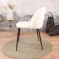 Luuk eetkamerstoel teddy heeft een tijdloos, strak en mooi design. De zitting is volledig bekleed met een zachte teddy stof. Zo voelt deze eetkamerstoel heerlijk aan en is hij helemaal van deze tijd. Luuk is verkrijgbaar in drie populaire kleuren; wit, grijs en lichtbruin. Dit zorgt voor een chique uitstraling. De kuip is bevestigd op een stevig onderstel van zwart metaal. Luuk is door deze combinatie ook uitermate geschikt voor op kantoor of in een hippe horecagelegenheid. Combineer de diverse kleuren voor een speels en persoonlijk effect of creëer rust en eenheid binnen het interieur door te gaan voor jouw favoriete kleur. De zachte, aaibare stof combineert perfect met materialen vol texturen, zoals verschillende houtsoorten en rotan. Ook bij een Scandinavisch interieur misstaat het stofje niet.