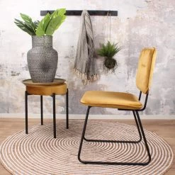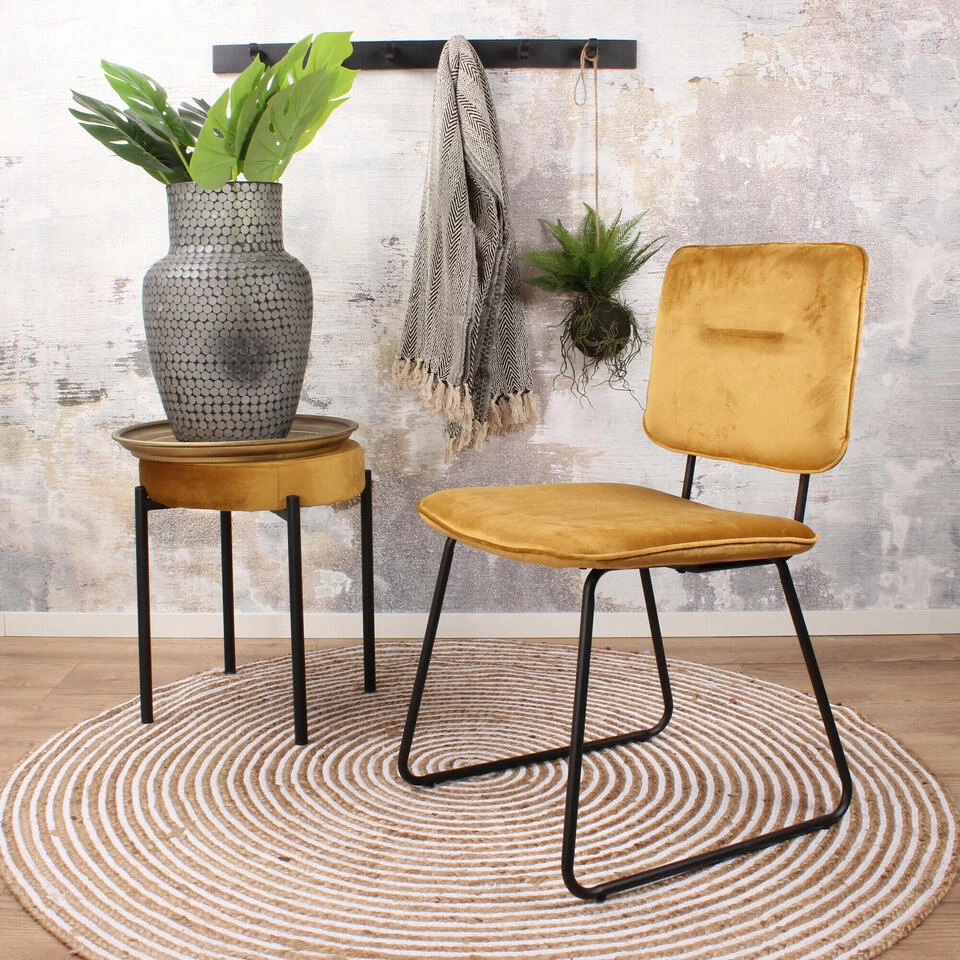 De Whap eetkamerstoel heeft naast een warme uitstraling ook een hippe industriële look. Deze stoel is netjes afgewerkt met een bies en een dikke velours stof. Deze stoel is uitermate geschikt voor horeca projecten of een hippe en trendy woonkeuken of eetkamer. Deze fijne comfortabele stoel is verkrijgbaar in de trendy kleuren goudgeel, zalmroze, petrol blauw en donkergroen. Kom gerust langs in onze winkel om de stoel te proberen.