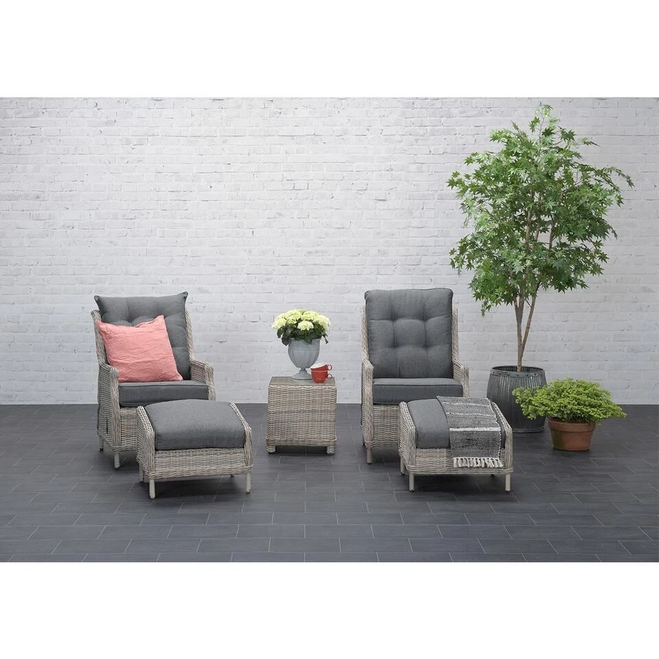 De loungeset wordt geleverd met comfortabele kussens van 9 cm dikte. De kussens zijn gemaakt van hoogwaardige kwaliteit polyester en zijn voorzien van een rits. De hoezen zijn hierdoor eenvoudig met de hand te wassen. De kussens zijn wel voorzien van een waterafstotende coating. Stel dat er drinken gemorst wordt op de kussens, dan is dit eenvoudig er vanaf te vegen. De kussens zijn dus niet 100% waterdicht. Na het gebruik van de kussens kunnen deze opgeborgen worden in de schuur of in een kussenbox.