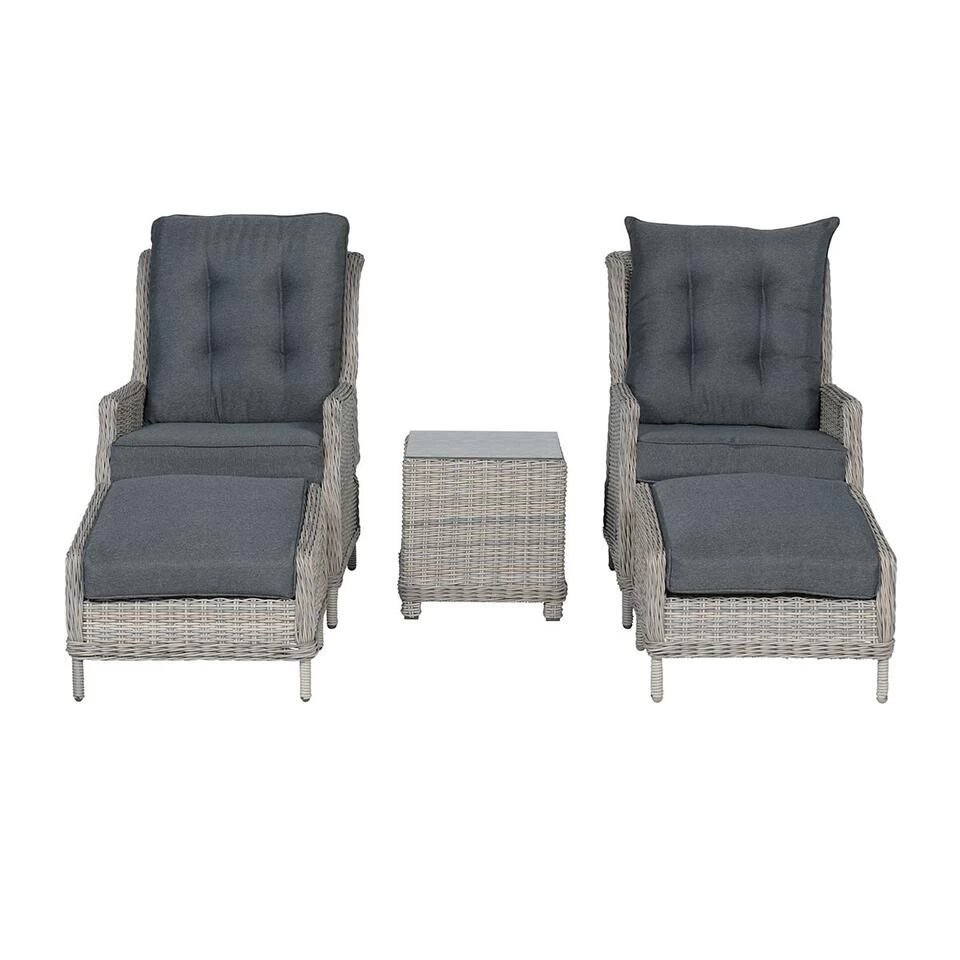 De loungebank heeft een afmeting van 206,5 cm lengte, 207,6 cm breedte en een hoogte van 65 cm. De loungestoel heeft een afmeting van 83 cm breedte, is 73 cm diep en is 65cm hoog. De loungetafel heeft een afmeting van 80 cm bij 80 cm en een hoogte van 38 cm.