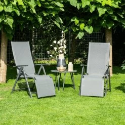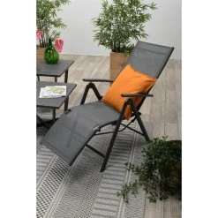 Deze relax stoel van het kwaliteitsmerk Garden Impressions heeft een aluminium frame en is verstelbaar. Dit aluminium frame heeft een laag van stevige poedercoating. Het doek van de zitting en rugleuning is gemaakt van een textilene doek. Dit textilenen doek is gemaakt van all weather materiaal. Het doek biedt doordat het een beetje meeviert een prettig zitcomfort. De bevestigingspunten van deze relax fauteuil zijn gemaakt van Nylon.