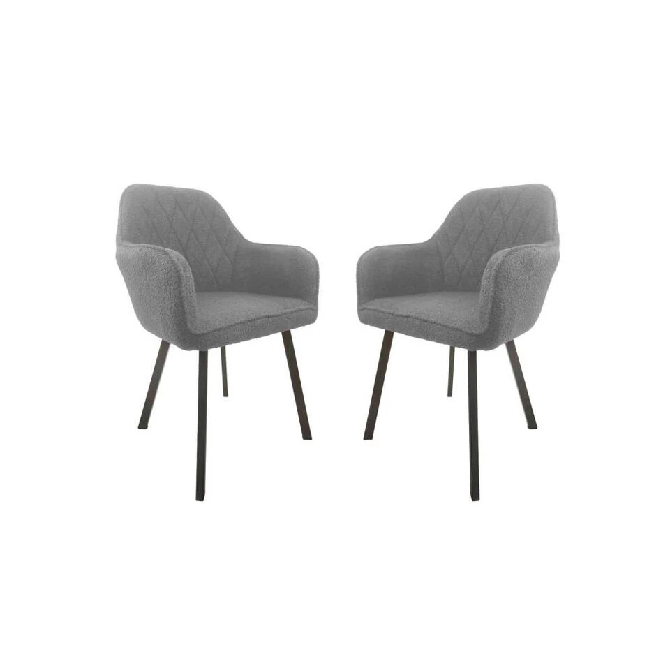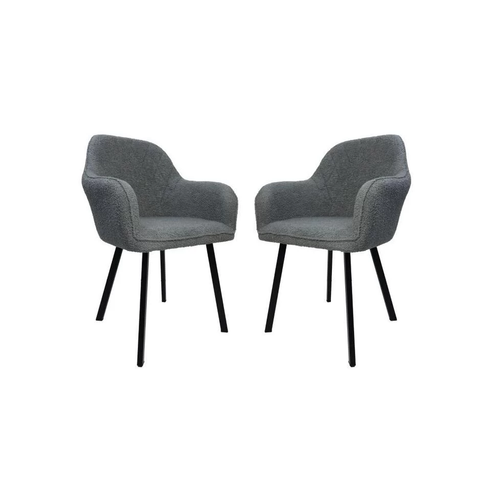 HSM Collection Eetkamerstoel Demi Lichtgrijs/Zwart Teddy/Metaal Set Van 2