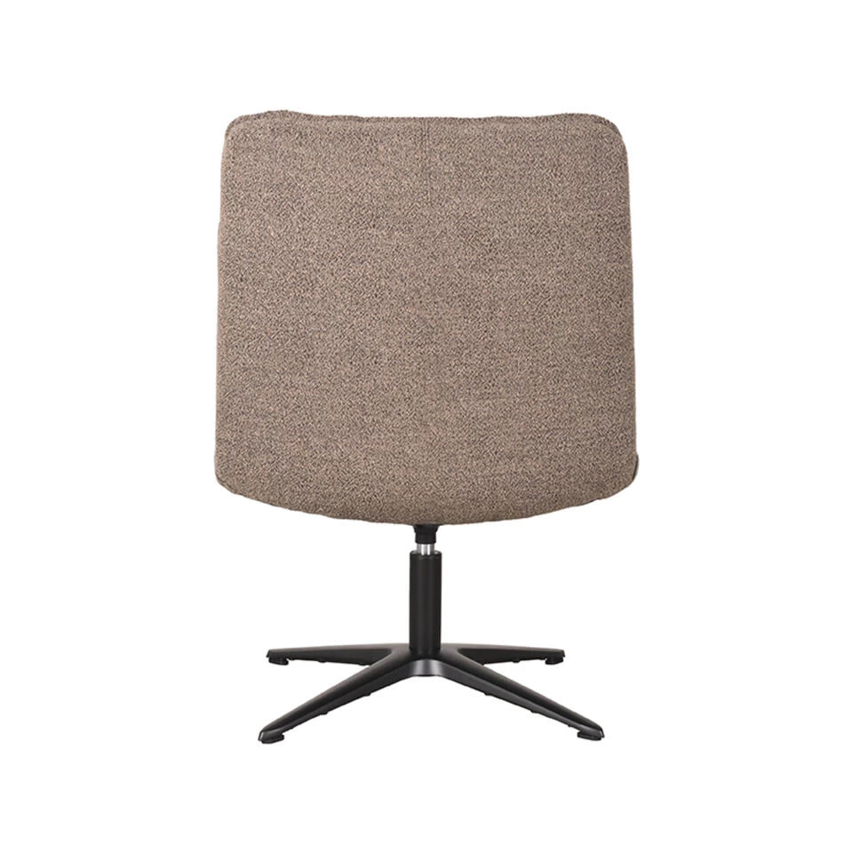 Fauteuil Vince van LABEL51 is een prachtige ergonomische, draaibare fauteuil uitgevoerd in een zachte aaibare, bruinkleurige bouclé. Vince is voorzien van strakke lijnen, mooie rondingen en een perfect comfort. Kortom; de ideale fauteuil om lekker in te relaxen.