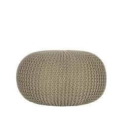 De gebreide poef, gemaakt van 100% katoen is ovaal van vorm, waarvan de doorsnede 70 cm. Hierdoor is hij ideaal te gebruiken als bijzettafel of voetenbankje.