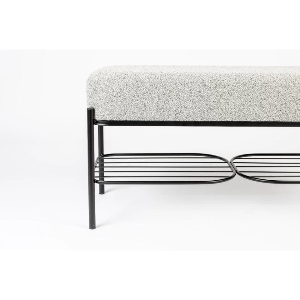 Dit hippe bankje heet Mandal! Kenmerkend aan dit exemplaar is haar stoere, zwart metalen frame, welke is voorzien van een handig rekje om bijvoorbeeld schoenen of tijdschriften op te plaatsen. Het stevige zitkussen dat is bekleed met een zachte, grijskleurige stof biedt een aangenaam zitcomfort. Fijn om nog vlug de veters te strikken voor vertrek! Het geheel heeft een afmeting van B90xD35xH45 cm. Dankzij haar simplistische ontwerp is bankje Mandal breed inzetbaar in ieder interieur; geef haar bijvoorbeeld een mooi plekje in de aankomsthal, of plaats haar bij de eettafel of in de slaapkamer. Ook verkrijgbaar als krukje in twee varianten. Maximaal draaggewicht: 100 kg.