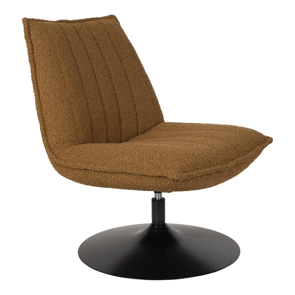 De zachte bouclé stof geeft deze stoel een extra comfortabele zit. Met de draaibare poot kun je altijd met jouw favoriete uitzicht achterover hangen. De bouclé stof in de combinatie met de zwarte poot zorgt voor een mooi contrast en laat deze stoel perfect tot zijn recht komen. Beschikbaar in verschillende kleuren.