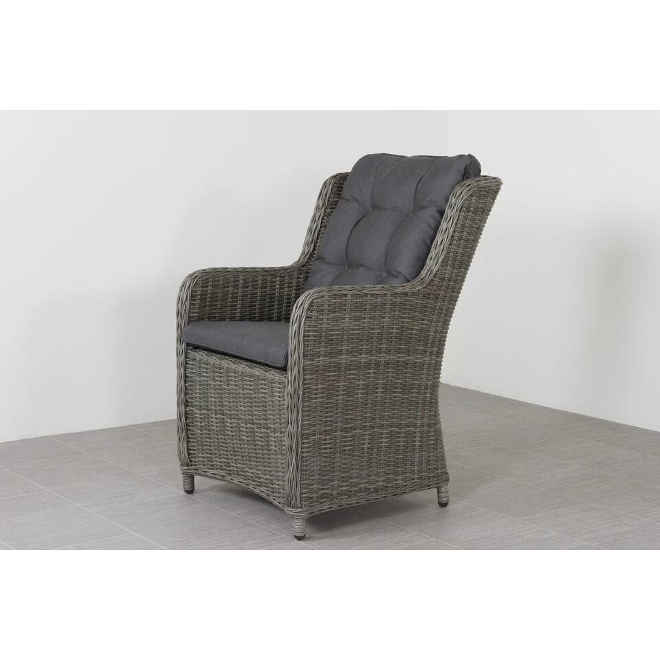 De Richmond tuinstoel heeft een grijs vlechtwerk wat ervoor zorgt dat deze bij iedere tafel gecombineert kan worden. De antraciet kussens van de dining tuinstoel maken de set tot een geheel. De stoel zit erg lekker door de ideale zithoogte en de comfortabele zit en rugkussens.