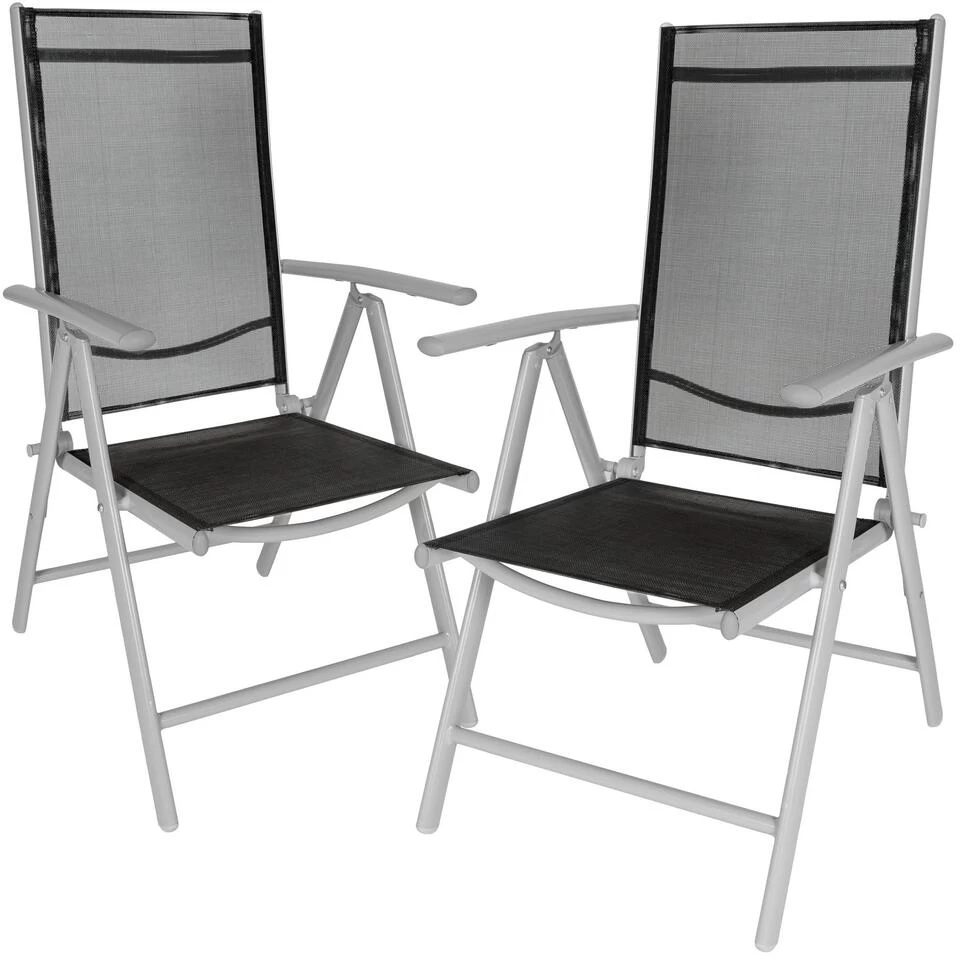 Tectake – 2x Aluminium Tuinstoel / Tuin Stoel Zilver – Zwart