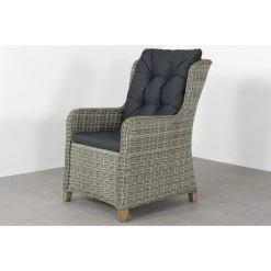 Dining tuinstoel Torino is de stoel met een comfortabel zitcomfort, dit komt door de antraciet kussens welke voorzien zijn van stevige vullingen. De tuinstoel is vervaadigd van een gepoedercoated aluminium frame en een stevig half rond wicker. Dit zorgt ervoor dat de Torino tuinstoel een natuurlijke uitstraling heeft en dat de tuinstoel erg onderhoudsvriendelijk is. De stoel kan perfect gecombineerd worden bij een granieten of houten tuintafel.Â