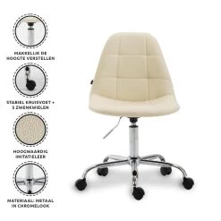 Onderstel – Materiaal: metaal in chroomlook – In hoogte verstelbaar door een gasveer met hendel – Inclusief 5 zwenkwielen